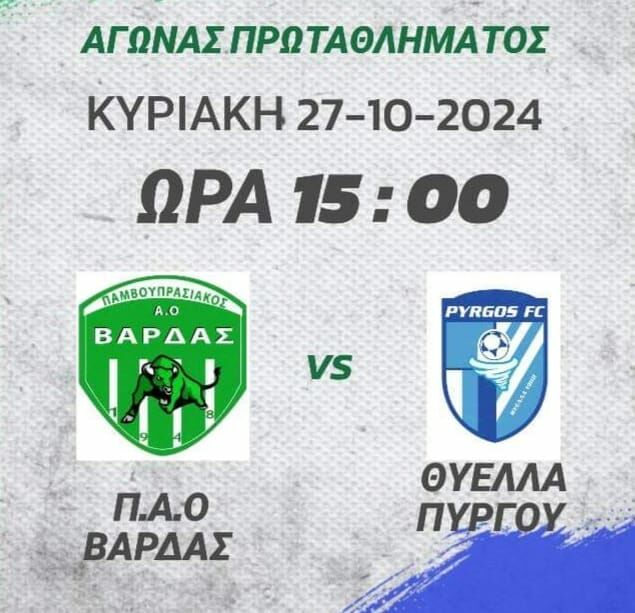 Σίγουρα το ματς στο Γρηγόριος Καλάκος ανάμεσα στον ΠΑΟ Βάρδας και τον Πύργο F.C να κλέβει την παράσταση, ενώ ενδιαφέρον παρουσιάζει και το γειτονικό ματς στη Γαστούνη.
