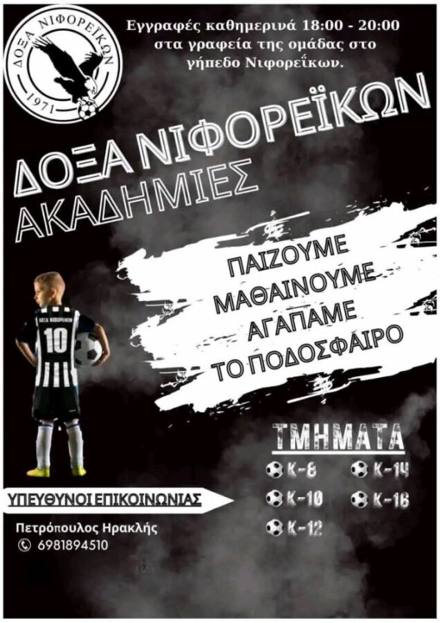 Ξεκίνησαν οι εγγραφές στην ακαδημία της Δόξας Νιφορεΐκων