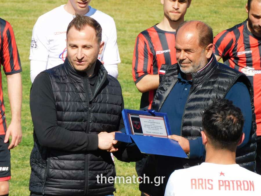 Πριν την έναρξη του αγώνα μάλιστα η ομάδα του Πανμοβριακού βράβευσε τον προπονητή του Άρη Πατρών Θανάση Παπουτσή ο οποίος πριν λίγα χρόνια ήταν στον πάγκο του Ριόλου.
