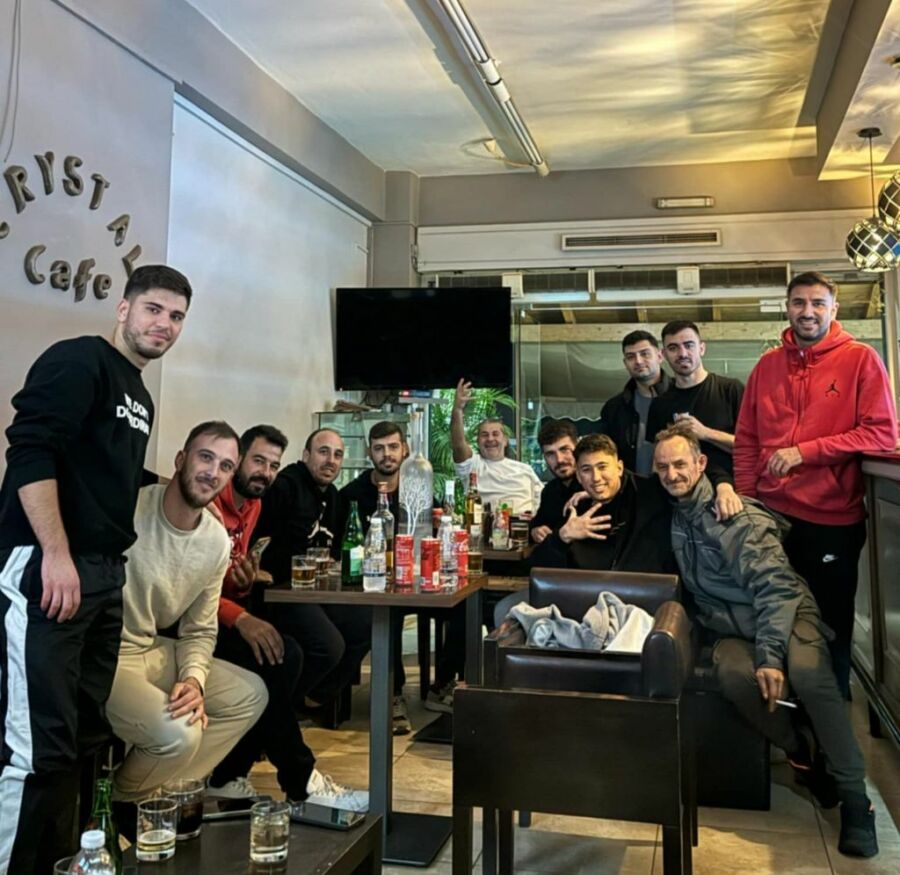 Μετά το τέλος του σημερινού αγώνα με το Μιντιλόγλι οι παίκτες μαζί με το πρόεδρο Χρήστο Αλατζά όπως βλέπετε και στη φωτό πανηγύρισαν σε καφέ της περιοχής…