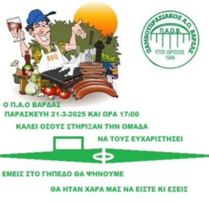 Καλεί όλο τον κόσμο και όλους όσοι βοήθησαν τη φετινή περίοδο να δώσουν το παρόν.