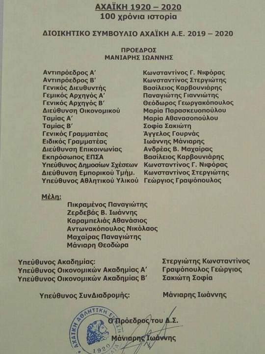 Με Μάνιαρη πρόεδρο, ανακοινώθηκε το νέο Δ.Σ. της Αχαϊκής Συνέχεια… Πληροφορίες άρθρου: Αναρτήθηκε στις 29.07.2019 | Κατηγορίες: Α' ΕΠΣΑ, Featured, Διοικητικά | Ετικέτες: Αχαϊκή, Γιάννης Μάνιαρης