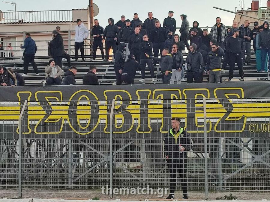 Κατάμεστη η κερκίδα της Νέας Μανωλάδας με εντυπωσιακή ατμόσφαιρα.