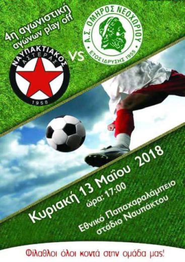 Μπαράζ ανόδου Α’ Αιτωλοακαρνανίας: Όμηρος Νεοχωρίου – Ναυπακτιακός Αστέρας 0-1 (φάσεις-δηλώσεις-φωτό) Συνέχεια… Πληροφορίες άρθρου: Αναρτήθηκε στις 7.05.2018 | Κατηγορίες: by thematch.gr, Featured, Ρεπορταζ αγώνα, Στιγμιότυπα, Φωτορεπορτάζ, ΕΠΣ Αιτωλοακαρνανίας, Συνέντευξη | Ετικέτες: Θοδωρής Σαμπανέι, Τάκης Σχοινάς, Χρήστος Καραπίτσος, Δημήτρης Σκούνας, Βασίλης Μπούνας, Όμηρος Νεοχωρίου, μπαράζ ανόδου, Βαγγέλης Γκάτσης, Ναυπακτιακός Αστέρας Προηγούμενα άρθρα
