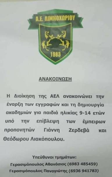 Δευτέρα Τετάρτη και Παρασκευή στις 15:30 το μεσημέρι στο γήπεδο του Λιμνοχωρίου.